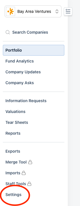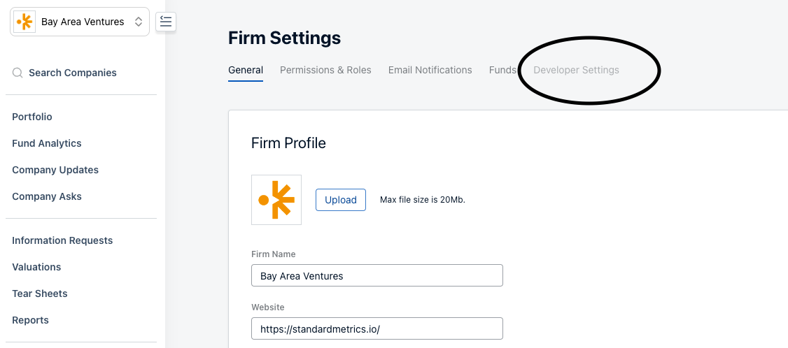 Follow these steps to create and securely store an API key using the Standard Metrics Developer Portal. This key will authenticate your requests and enable access to your firm’s financial and investment data.1. Navigate to Settings